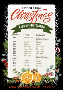 UDDER FARM CHRISTMAS OPENING TIMES