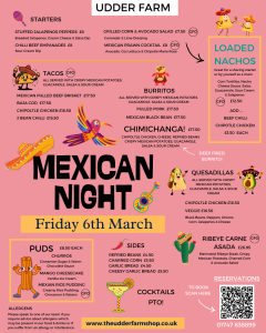 MEXICAN NIGHT AT THE UDDER FARM RESTAURANT Post published:4 February 2026 Reading time:0 mins read Read more articles Previous PostUDDER FARM STEAK NIGHT Next PostFRIDAY 13th VALENTINES NIGHT