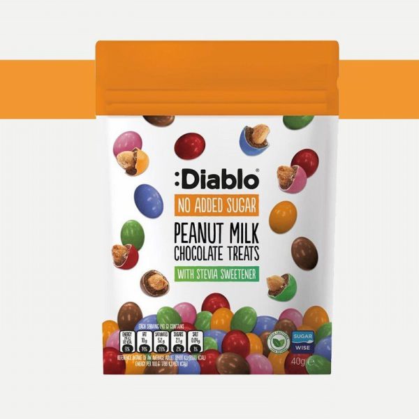 Diablo Milk Choc Peanuts Treats 40g £2.45 Out of stock SKU: 32324 Categories: Chocolates, Crisps and Snacks, Sugar Free, Sweets Opens in a new window Tweet This Product Opens in a new window Share on Facebook Opens in a new window Pin This Product Opens in a new window Mail This Product Related products Herefordshire Sausage & Mustard 150g £3.25 Add Mano Gr Lem/Pepp Corn Chips 140g £2.50 Add LapSnacks Sesame Peanuts £4.99 Add WW Whole Cashews 100g £2.25 Add