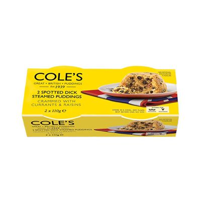 XM Coles Spotted Dick Twin Pack £5.45 In stock XM Coles Spotted Dick Twin Pack quantity Add to basket SKU: 14811 Categories: Cake, Desserts Opens in a new window Tweet This Product Opens in a new window Share on Facebook Opens in a new window Pin This Product Opens in a new window Mail This Product Related products Custard Powder £3.15 Add Vicenzovo Lady Fingers £2.95 Add ZDL GF CAKE DOUBLE CHOC BROWNIE £2.00 Add ZDL GF CAKE FARMHOUSE FRUIT £2.15 Add