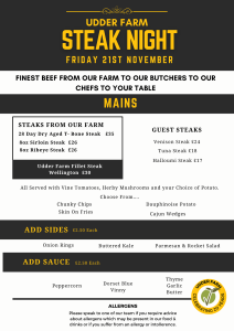 Join us for this fabulous evening all about steaks! Enjoy the finest beef from our farm or try one of our guests steaks. Reserve your table today!